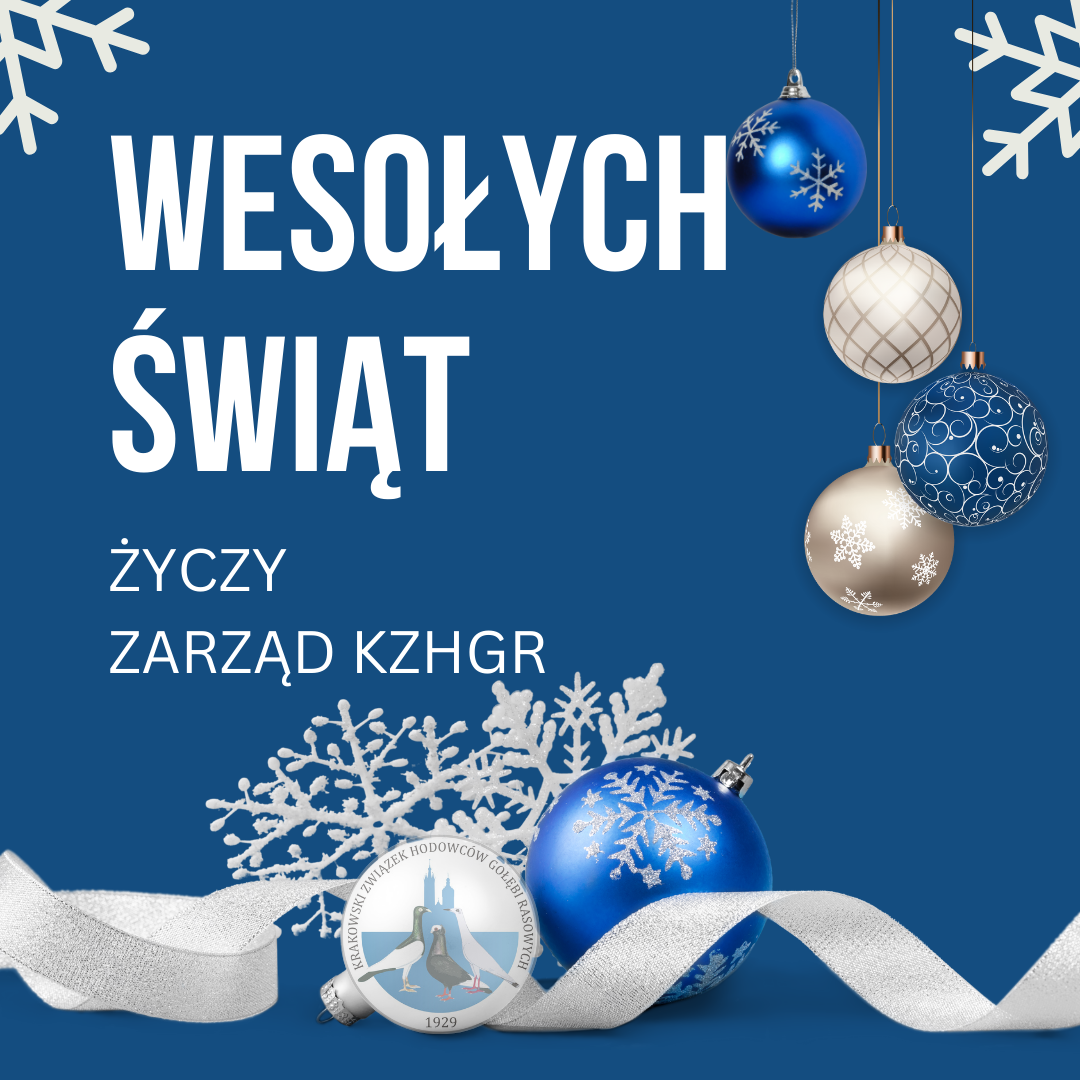Z okazji Świąt Bożego Narodzenia Zarząd Krakowskiego Związku Hodowców Gołębi Rasowych składa wszystkim członkom naszej społeczności hodowlanej, a także wszystkim hodowcom, sympatykom oraz pasjonatom najserdeczniejsze życzenia zdrowia, spokoju i rodzinnego ciepła.